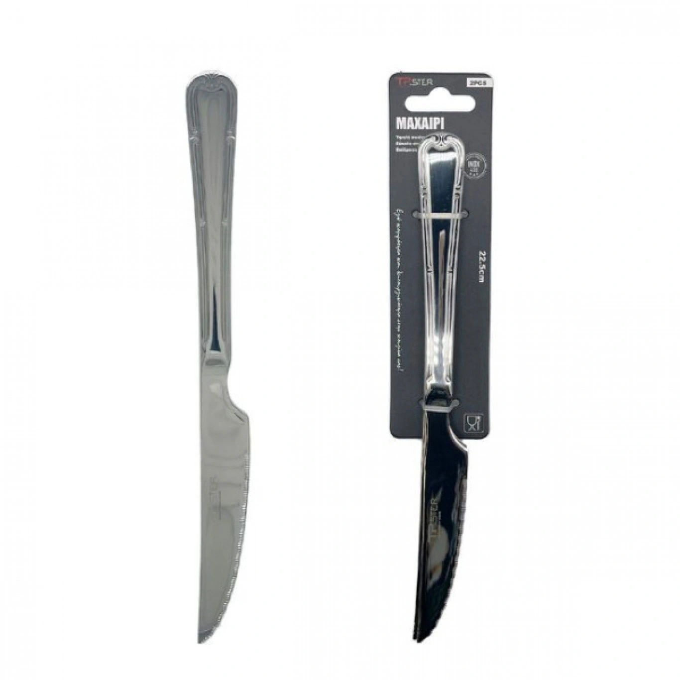 Σετ 2 τεμ. Μαχαίρια Φαγητού Ανοξείδωτα Κατάλληλα για Κρέας με Σχέδιο, 22.5cm – 33018