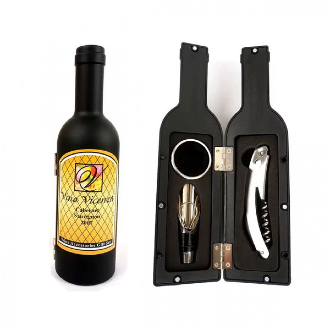 Σετ 3 Αξεσουάρ Κρασιού σε Θήκη με Σχήμα Μπουκάλι Κρασιού Vino Vicenza