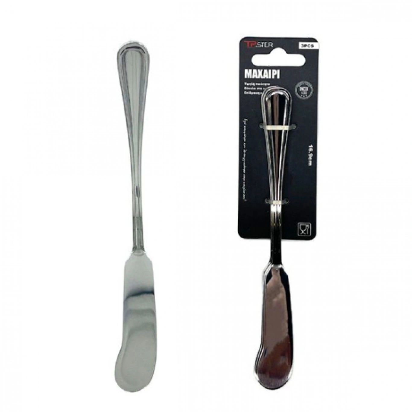 Σετ 3 Μαχαίρια Βουτύρου Ανοξείδωτα, με Σχέδιο, 16.9cm – 33052