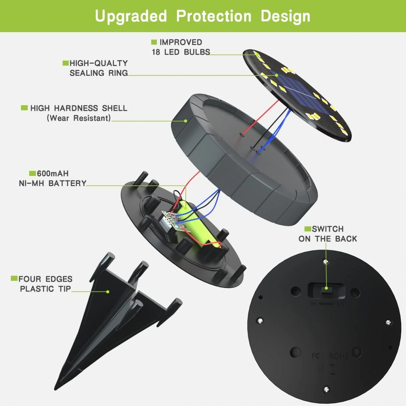Τα ηλιακά μας φώτα κήπου αποτελούνται από 18 φώτα LED, που σημαίνει ότι περισσότερο φως θα φωτίσει το δρόμο για το σπίτι σας.
