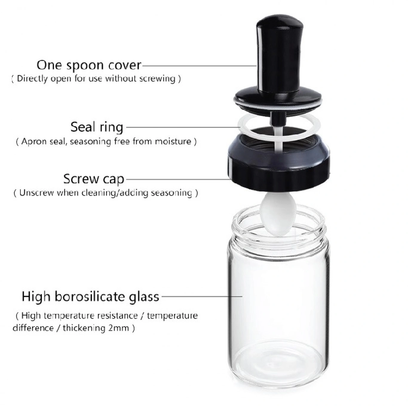 Η βάση είναι κατασκευασμένη από υψηλής ποιότητας πλαστικό. Τα δοχεία είναι κατασκευασμένα από βοριοπυριτικό γυαλί. Υπάρχει επίσης ένα κουταλάκι ενσωματωμένο στο καπάκι των δοχείων για εύκολη προσθήκη μπαχαρικών στα πιάτα.