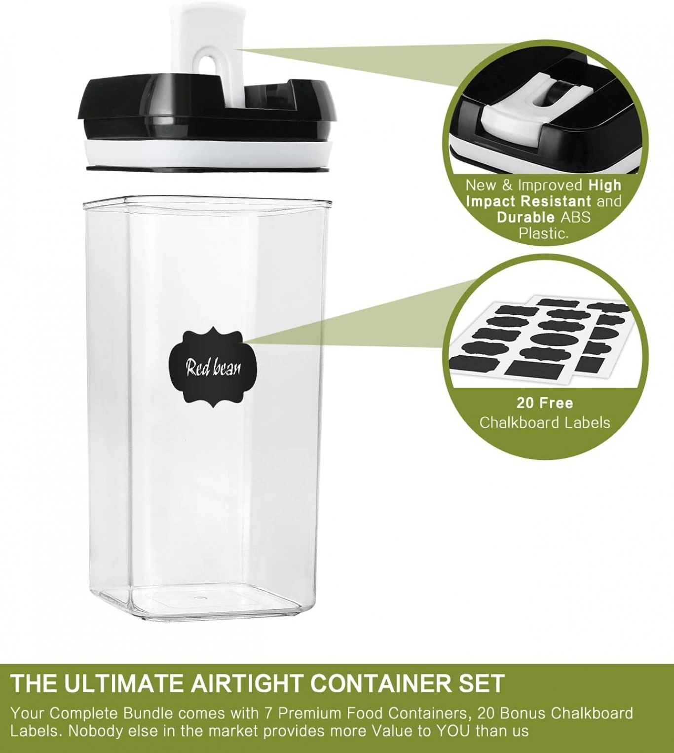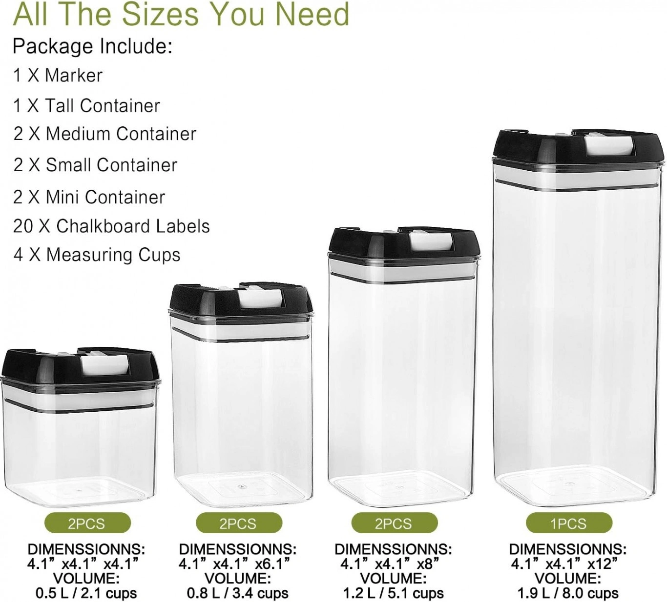 Ιδανικά για αποθήκευση αλευριού, ζάχαρης, ρυζιού, δημητριακών, ξηρών καρπών, φασολιών, σνακ, ζυμαρικών, καφέ και τσαγιού και επίσης ιδανικό για τη συγκράτηση υγρών όπως νερό, χυμό, σούπα και άλλα.