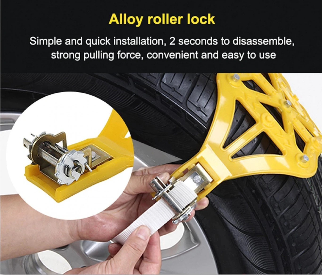 Ξεχάστε ότι ξέρατε για τις αλυσίδες χιονιού – δρόμου – λάσπης για το αυτοκίνητο σας! Τέρμα στις δύσκολες τοποθετήσεις , στο σήκωμα του αυτοκινήτου και στις βαριές αλυσίδες! Ταιριάζουν σε όλα τα αυτοκίνητα με πλάτος ελαστικών 165mm-270mm.