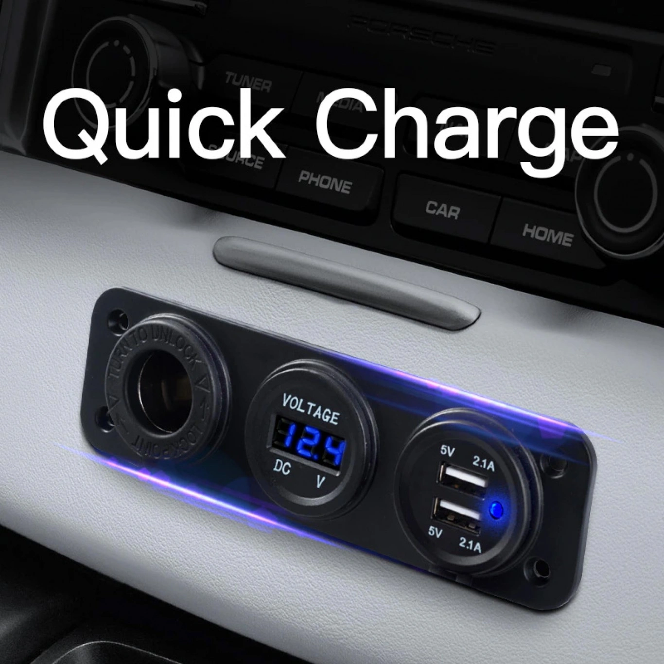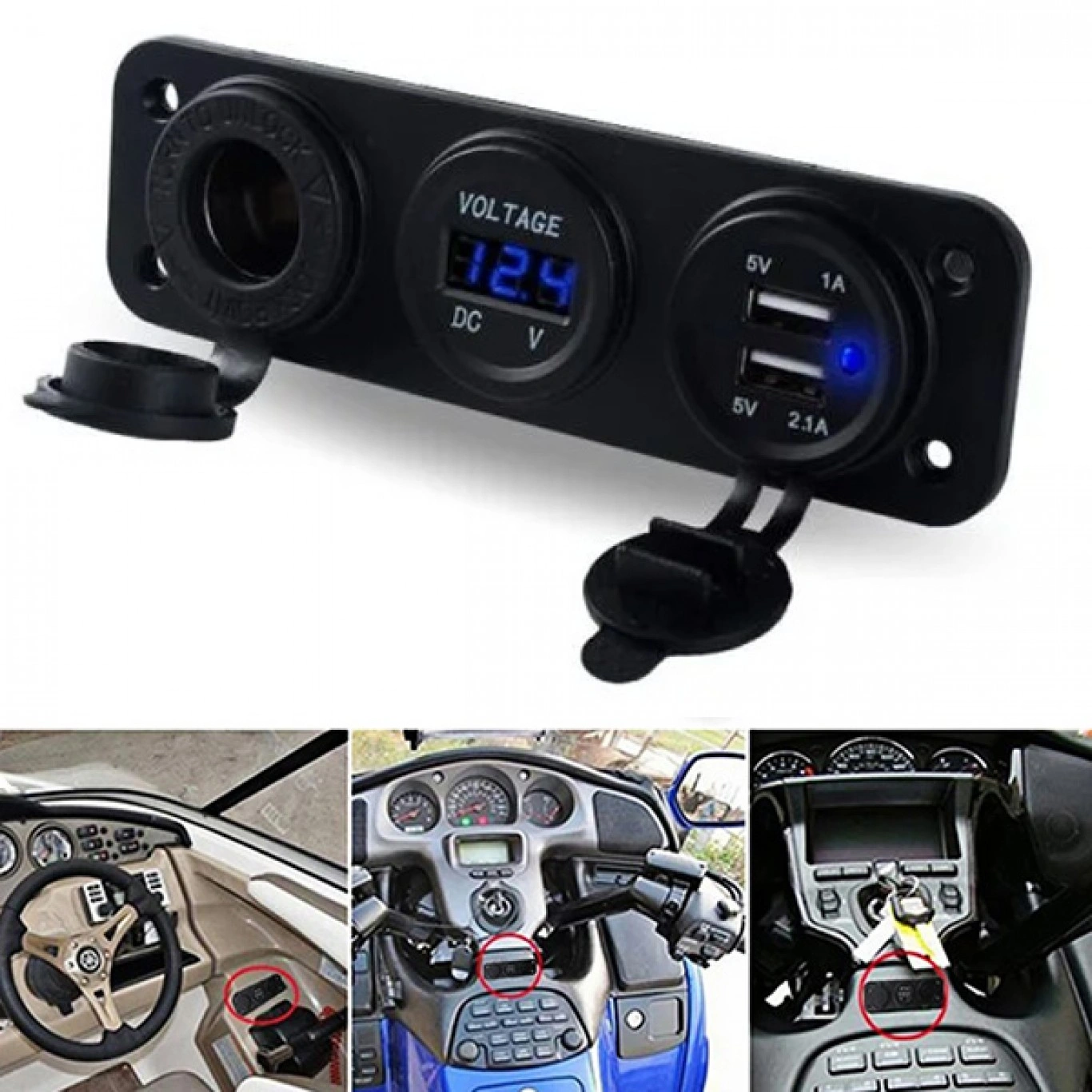 Ένα αδιάβροχο πάνελ που ενσωματώνει υποδοχή πρίζας αναπτήρα αυτοκινήτου, φωτιζόμενο ψηφιακό βολτόμετρο και όργανο φόρτισης με δύο θύρες USB!✔️ Ανθεκτικό.✔️ Αδιάβροχο.✔️ Ιδανικό για χρήση σε αυτοκίνητα, τροχόσπιτα, σκάφη, μοτοσυκλέτες και ειδικές κατασκευές.✔️ Κατασκευασμένο από ανθεκτικό πλαστικό ABS.✔️ Σχεδιασμένο με υψηλή εργονομία και ποιότητα.✔️ Πανεύκολη εγκατάσταση και χρήση.