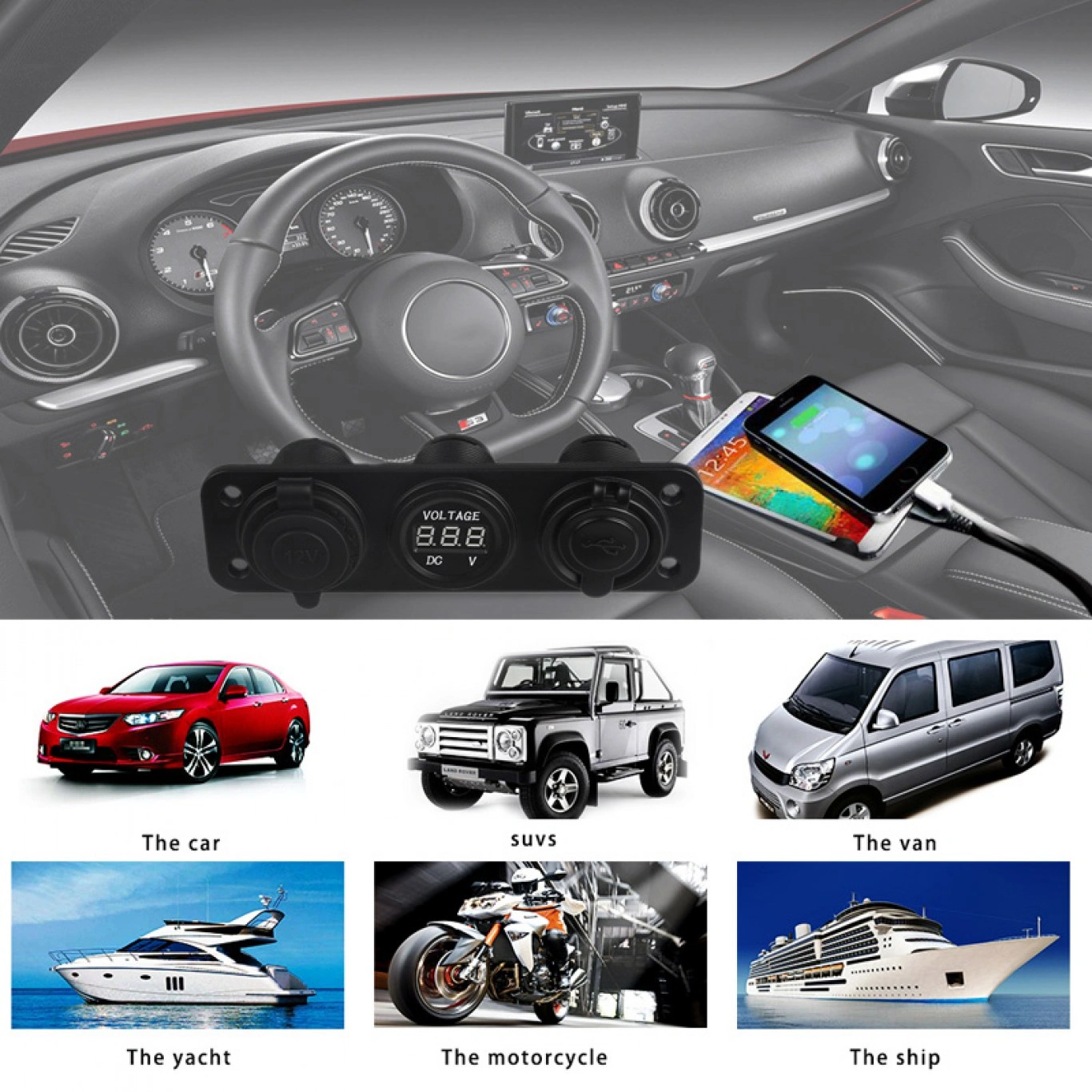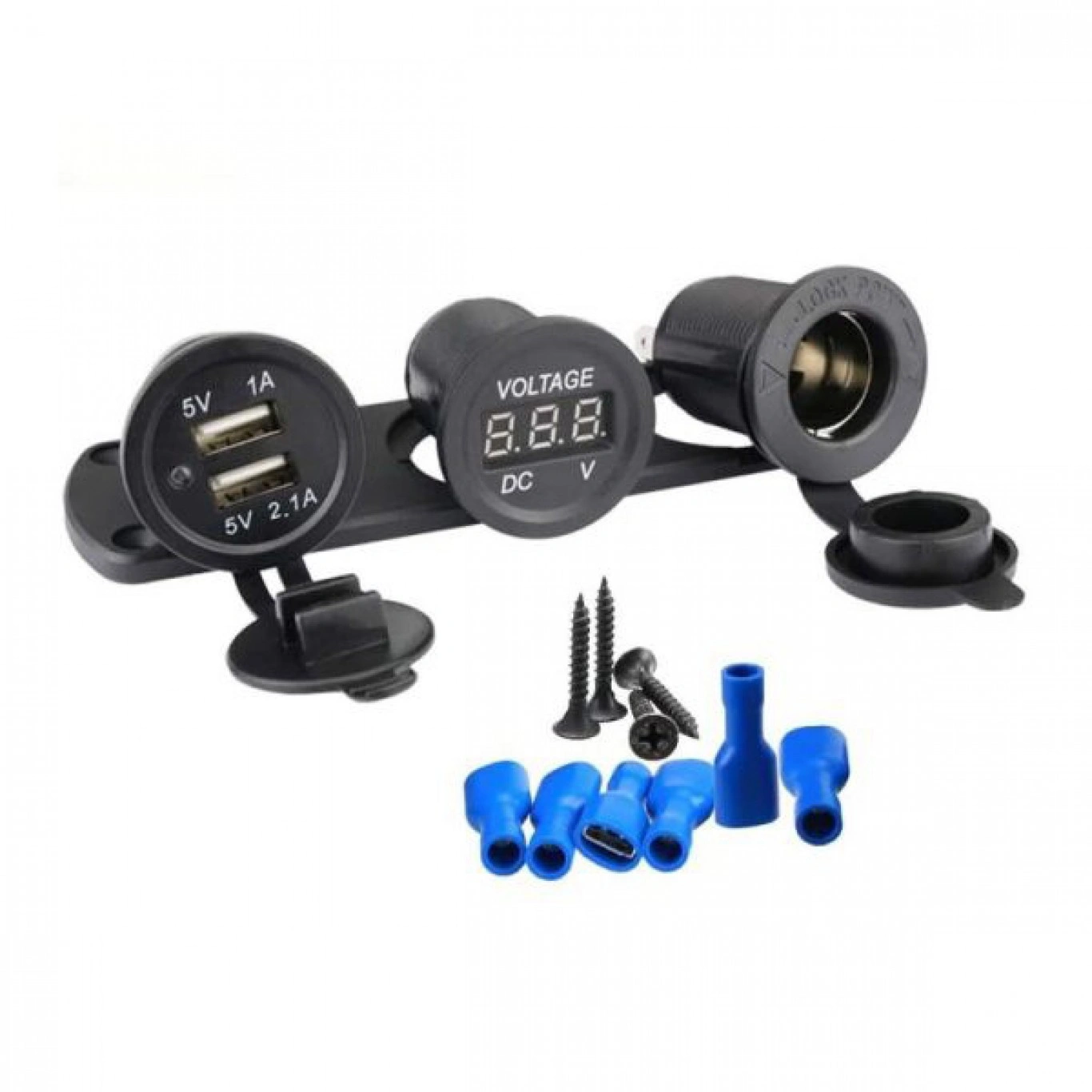 Σετ Αδιάβροχο 3 σε 1 Πάνελ Οργάνων Φόρτισης – Ψηφιακό Βολτόμετρο & Αντάπτορας Αναπτήρα με 2 Θύρες USB Γρήγορης Φόρτισης