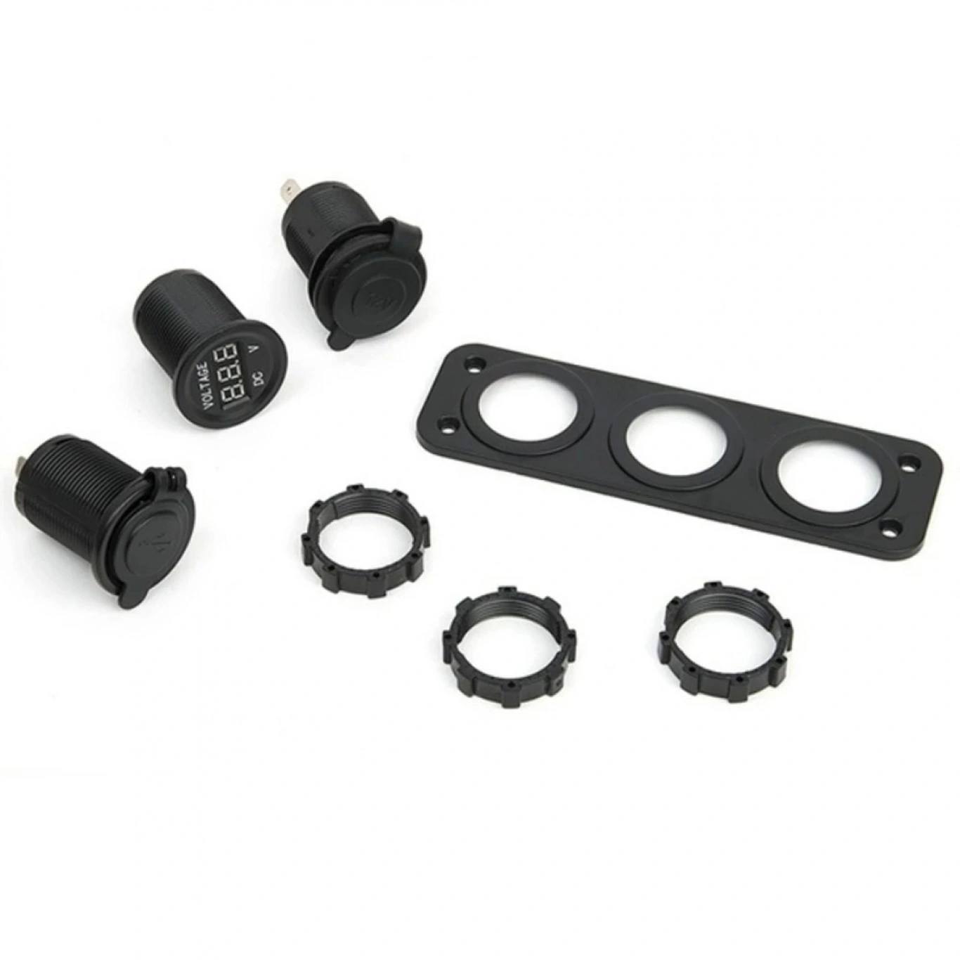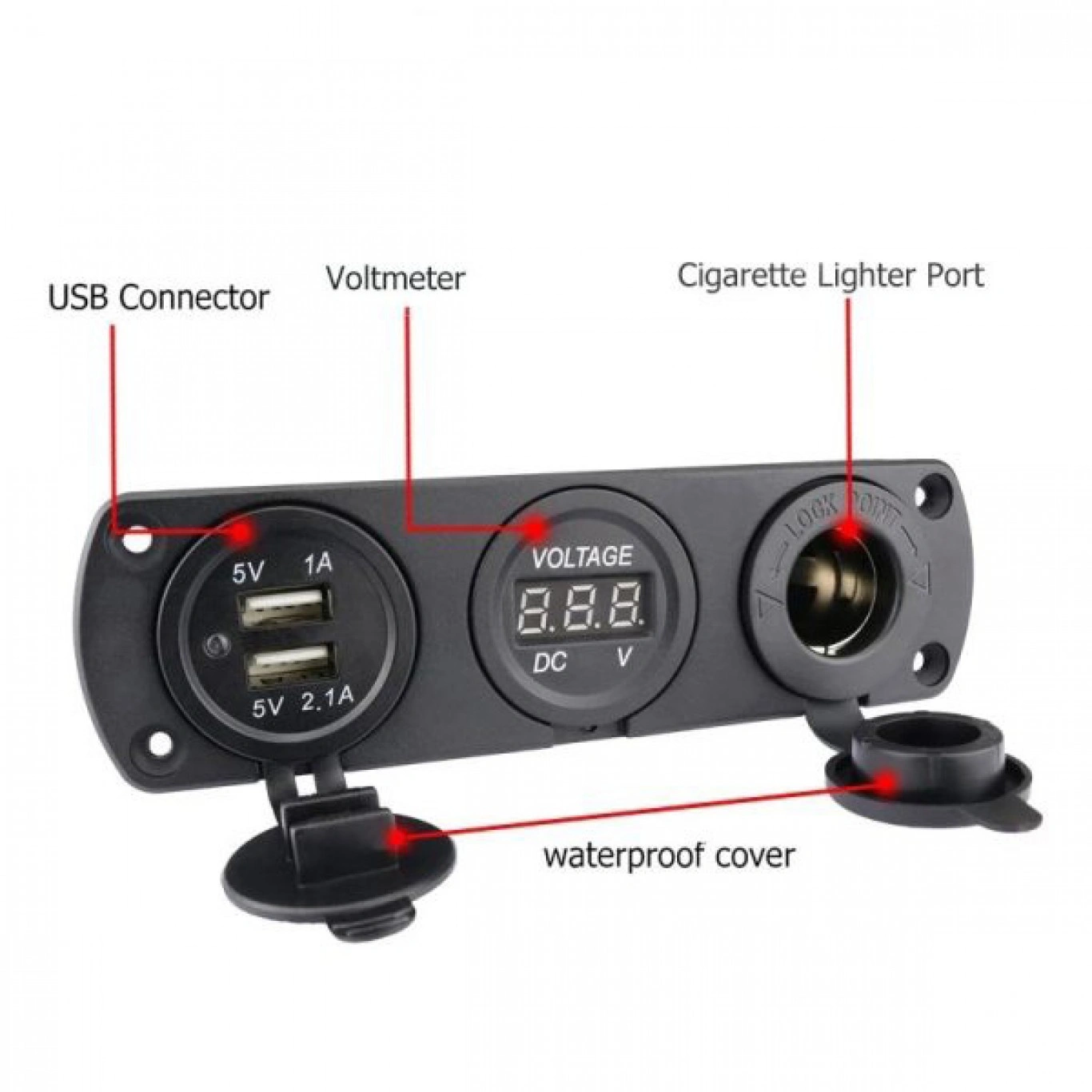 Ένα αδιάβροχο πάνελ που ενσωματώνει υποδοχή πρίζας αναπτήρα αυτοκινήτου, φωτιζόμενο ψηφιακό βολτόμετρο και όργανο φόρτισης με δύο θύρες USB!