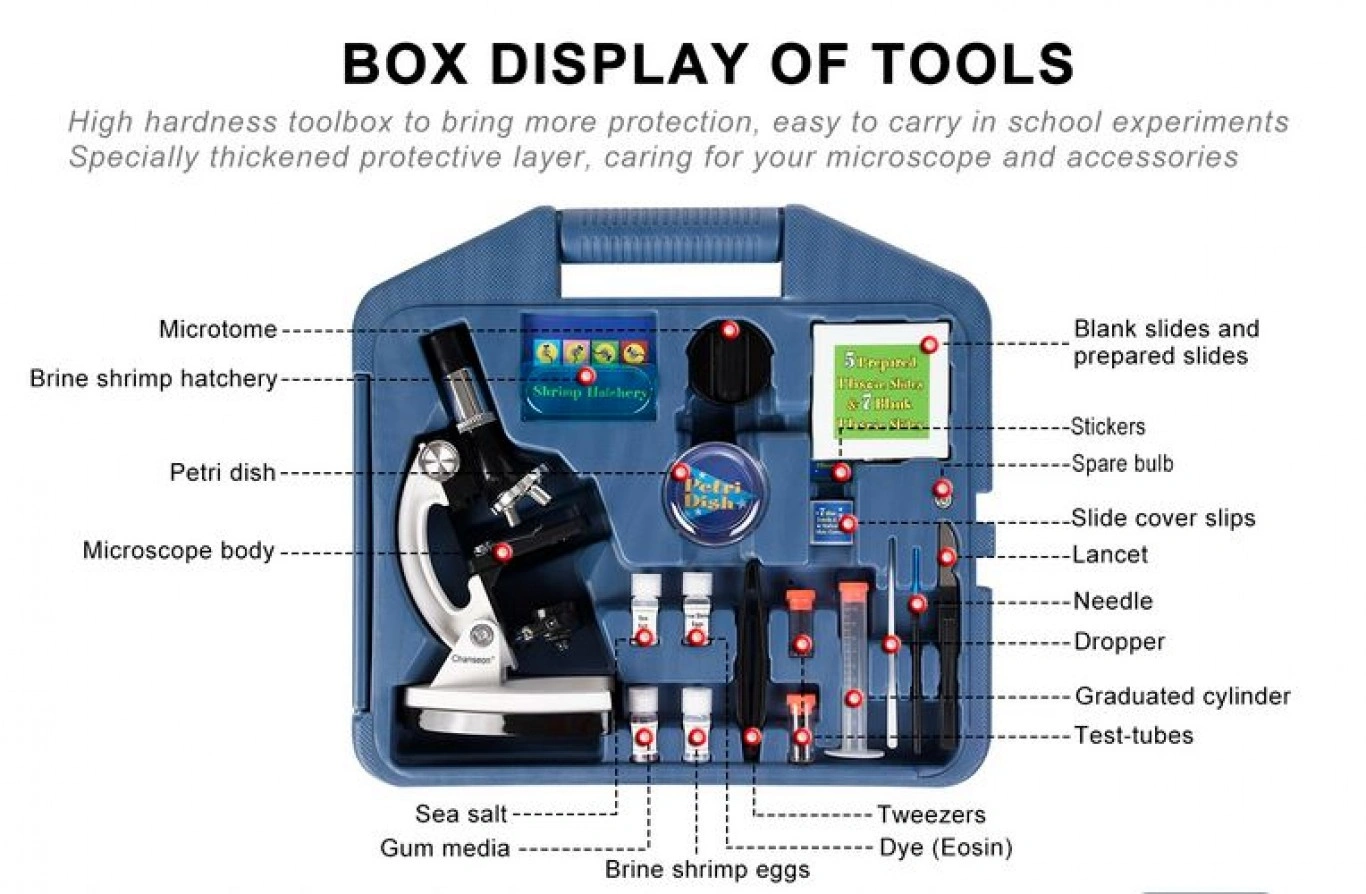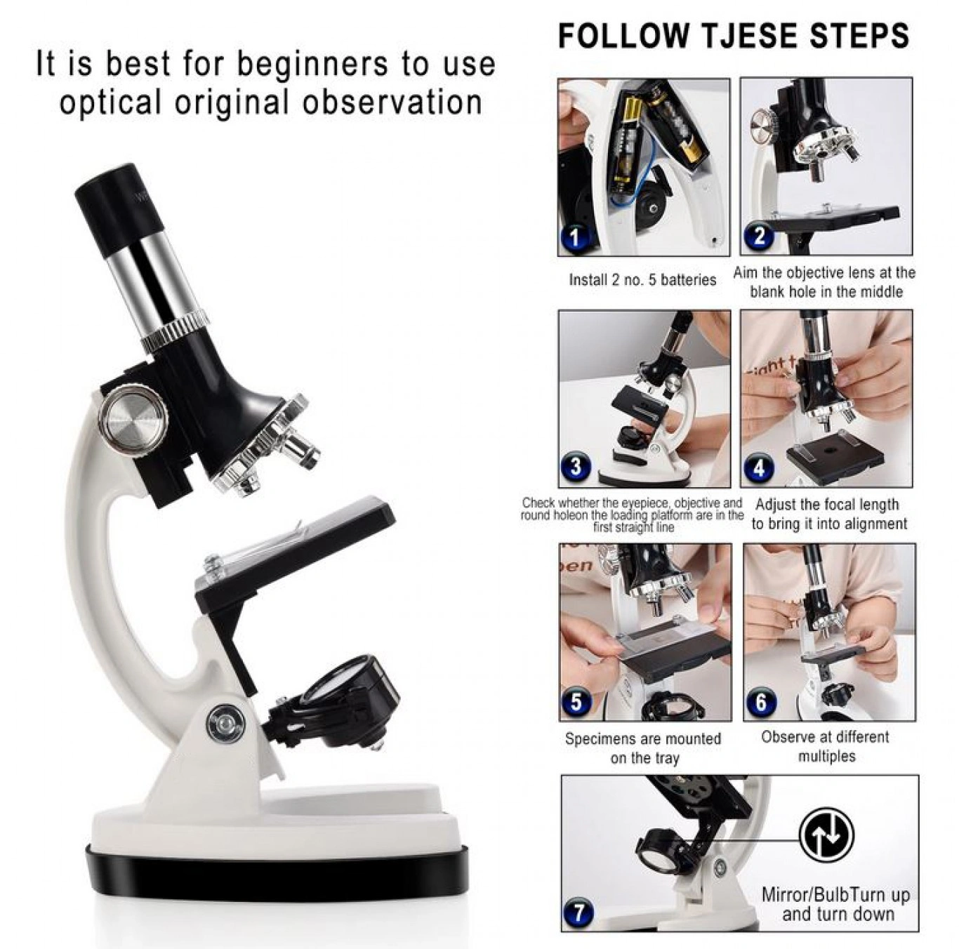 Με ευρύ πεδίο γωνιών θέασης και άνετη εμπειρία παρατήρησης, το παιδικό μικροσκόπιο αυτό προσφέρει μεγέθυνση 300X, 600X και 1200X, ιδανική για εκπαιδευτικές εφαρμογές και παρατήρηση μικροσκοπικών οργανισμών που δεν φαίνονται με το γυμνό μάτι.