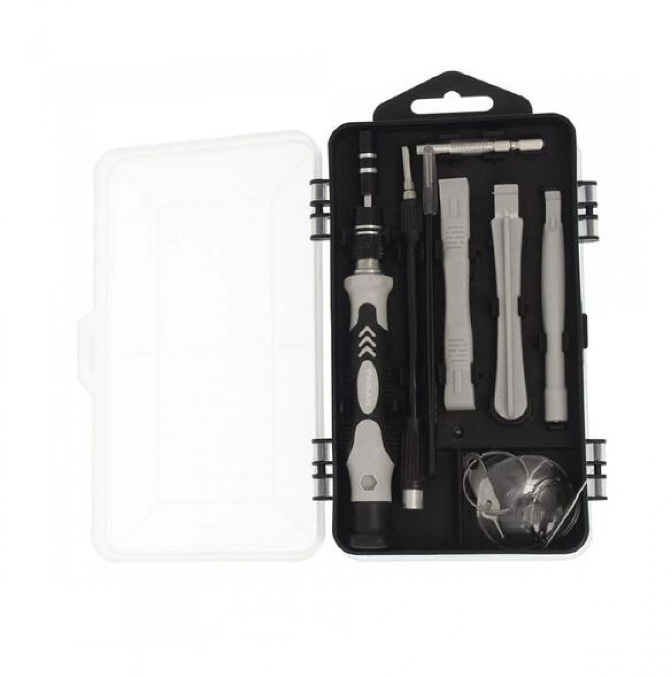 Πολύ χρήσιμο σετ με 16 εργαλεία για επισκευή όλων των τύπων ρολογιών από μια αλλαγή μπαταρίας ή αλλαγή στο λουράκι μέχρι και για επαγγελματικές επισκευές. Ιδανικό επίσης για μαστορέματα σε συσκευές που απαιτούν κινήσεις ακριβείας και αποτελούνται από μικρά εξαρτήματα.