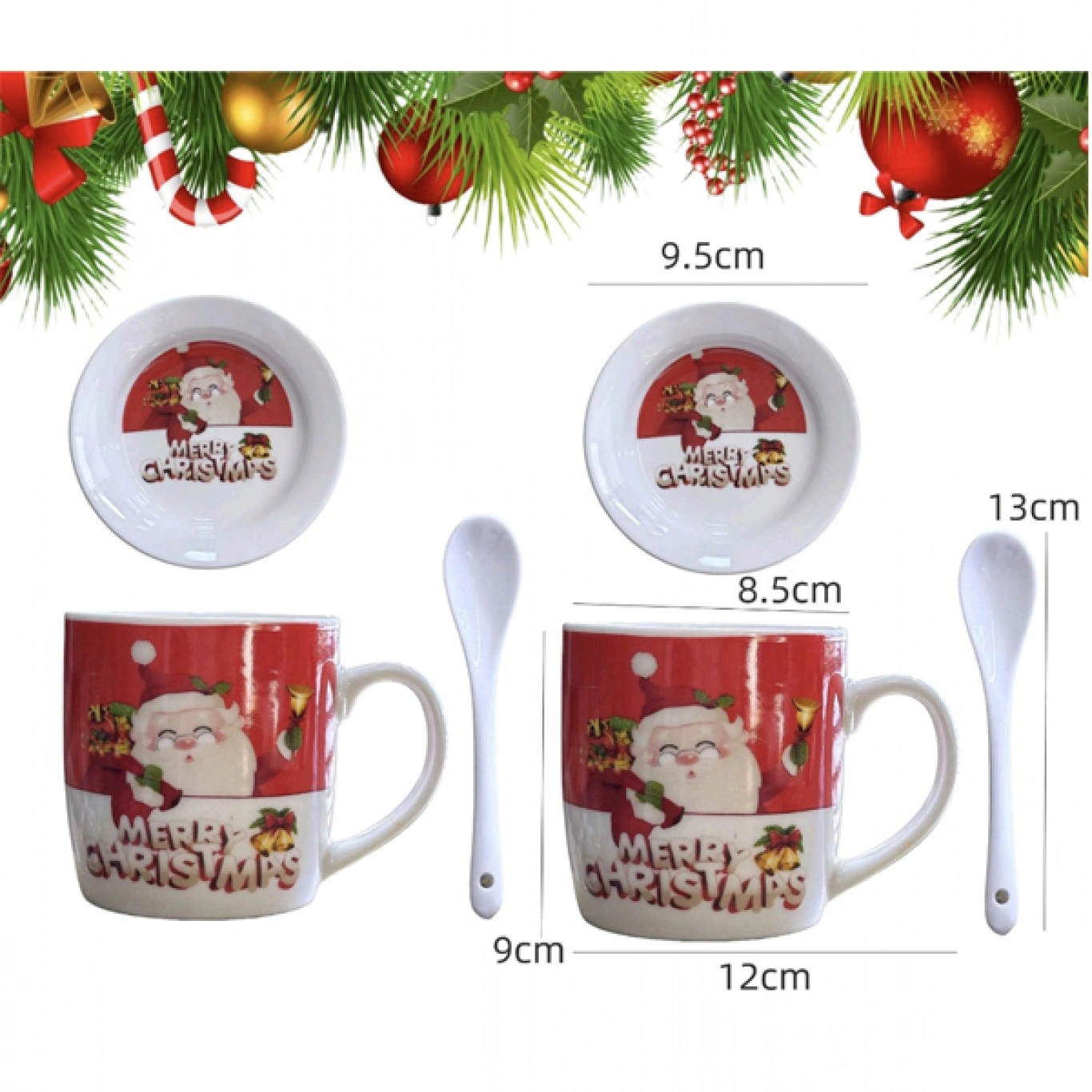 Σετ με 2 Χριστουγεννιάτικες Κεραμικές Κούπες 320ml με Πιατάκια και Κουταλάκια 96053