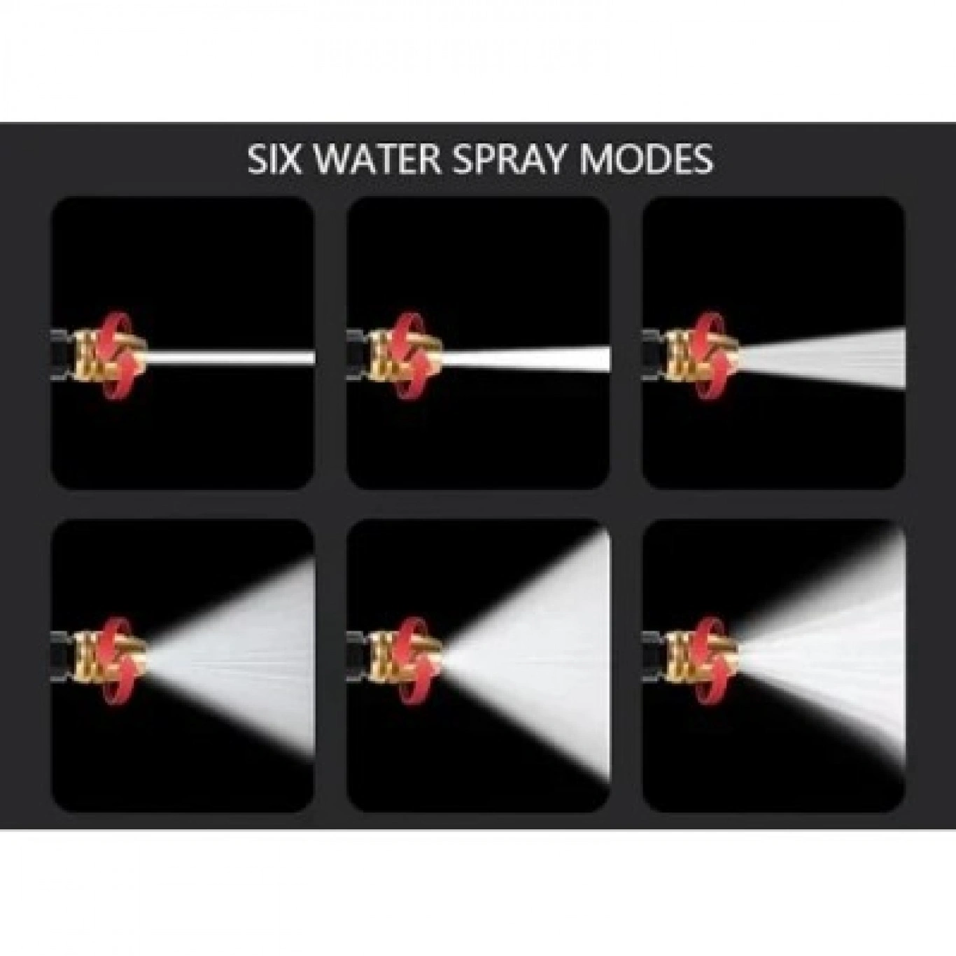 • Ρυθμιζόμενες λειτουργίες: 6• Ταχυσύνδεσμοι: 1/4″ συμβατοί με λάστιχα κήπου ή πλυντηρίων πίεσης :• 1x Ψεκαστήρας νερού• 3x Προσαρμογείς 1/4″