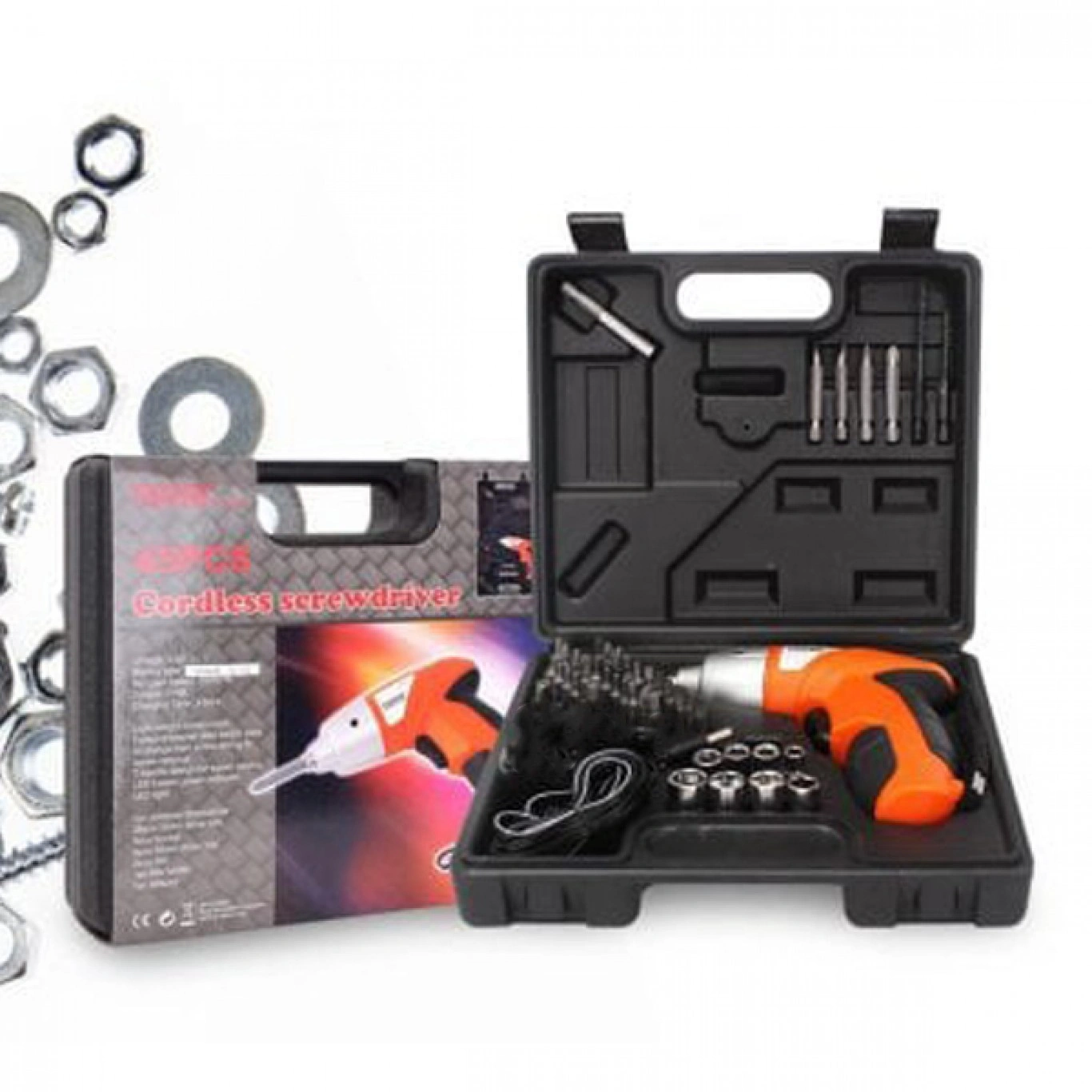 Ένα πρακτικό, φορητό ηλεκτρικό κατσαβίδι με επαναφορτιζόμενη μπαταρία. Ελαφριά, εύχρηστη κατασκευή για εύκολη χρήση. Έρχεται σε βαλιτσάκι με 45 αξεσουάρ.