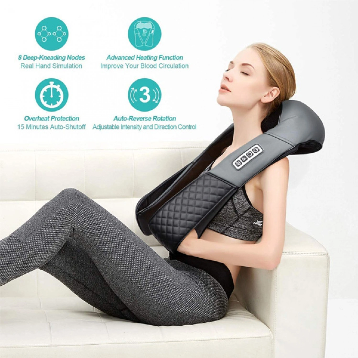 Είχατε μια κουραστική μέρα; Μήπως περπατήσατε πολύ; Η μήπως χρειάστηκε να κάνετε πολλές χειρωνακτικές δουλειές και κουράστηκε η πλάτη / μέση / χέρια / αυχένας σας; Με τη συσκευή αυτή, θα έχετε έναν επαγγελματία μασέρ σπίτι σας ή όπου θελήσετε, όταν τον χρειάζεστε! Με τη θερμότητα που παράγει, βελτιώνεται η κυκλοφορία του αίματος και ανακουφίζεστε από τον μυϊκό πόνο, τις κράμπες και την ένταση. Το μασάζ σώματος βοηθά το σώμα να ανακουφίσει τον πόνο, να ανακουφίσει την ένταση και την κόπωση των μυών. Το μασάζ πλάτης και λαιμού έχει 3 επίπεδα ισχύος για να προσαρμόσει το μασάζ στις ανάγκες σας για πιο ακριβή και απαλό έλεγχο, ενώ διαθέτει αμφίδρομη κίνηση για να φτάσει κάθε γωνιά του σώματός σας. Κάντε μασάζ στο σπίτι (περιέχεται πρίζα) ή στο αυτοκίνητο (περιέχεται αντάπτορας για τον αναπτήρα του αυτοκινήτου).