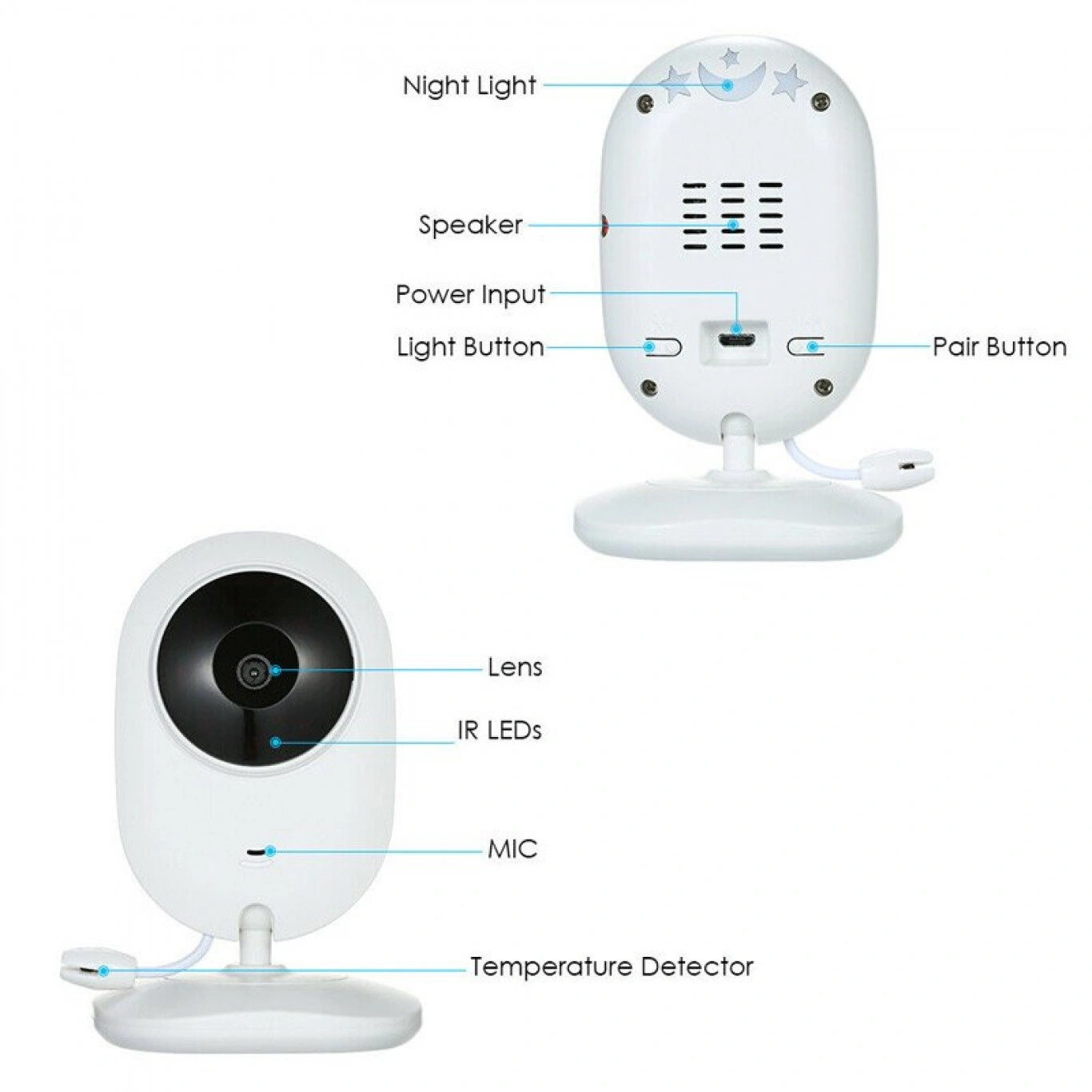 Τόσο η οθόνη όσο και η κάμερα έχουν ενσωματωμένο μικρόφωνο και ηχείο. Διαθέτει λοιπόν αμφίδρομη λειτουργία ενδοεπικοινωνίας για να ακούτε το μωρό σας και να χρησιμοποιείτε τη δική σας φωνή για να το ανακουφίζετε.