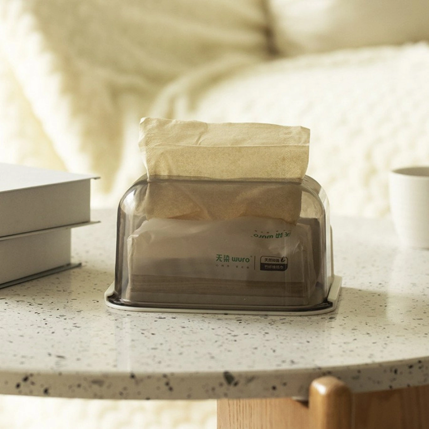 Θήκη για χαρτομάντηλα με διαφανή σχεδιασμό, κατάλληλη για να τα προστατεύει από το νερό και τη σκόνη του περιβάλλοντα χώρου.