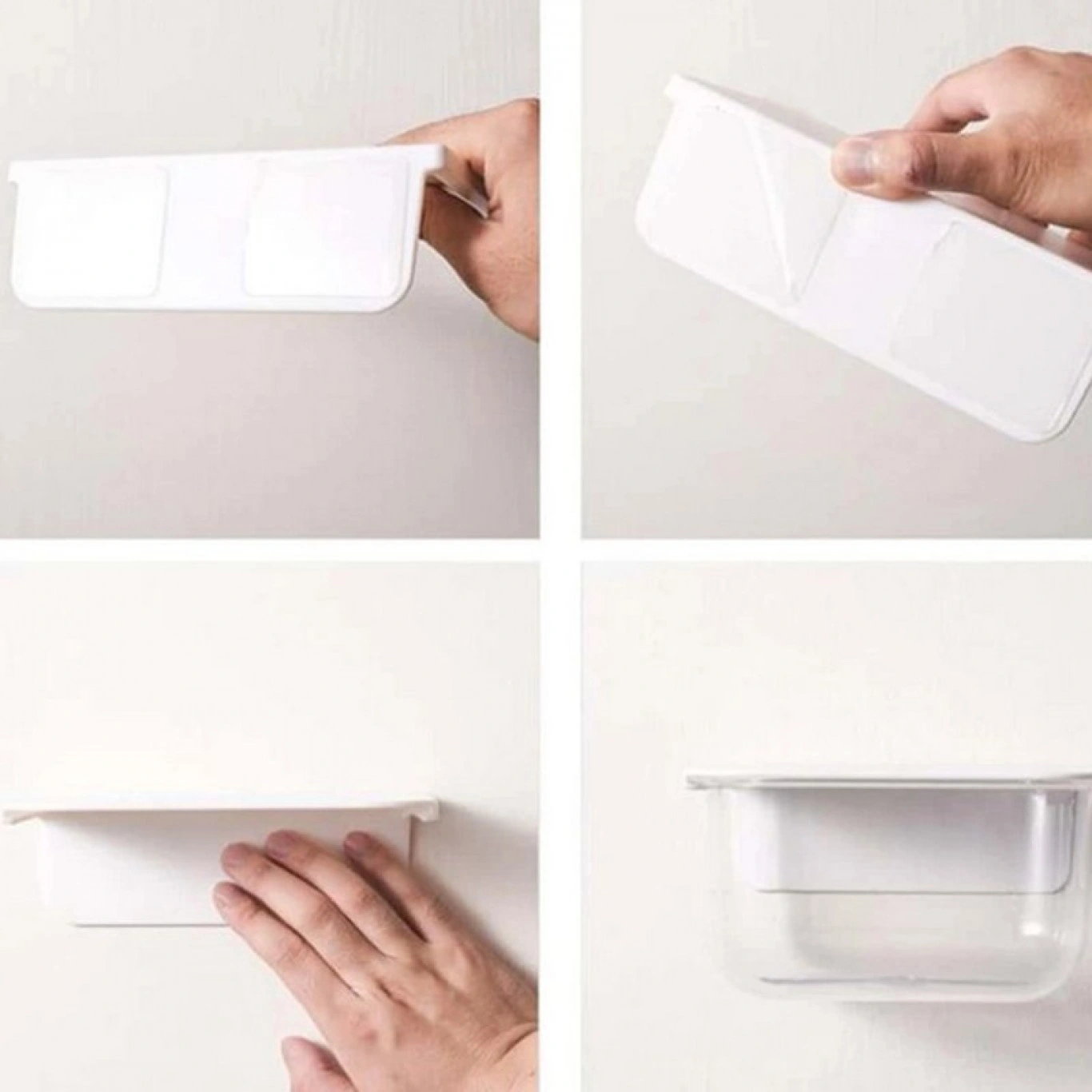 Θήκη για Χαρτομάντηλα με Αυτοκόλλητη Βάση – Επιτοίχια Διάφανη Χαρτοθήκη 18.5×9.9×12.8cm Πλαστική