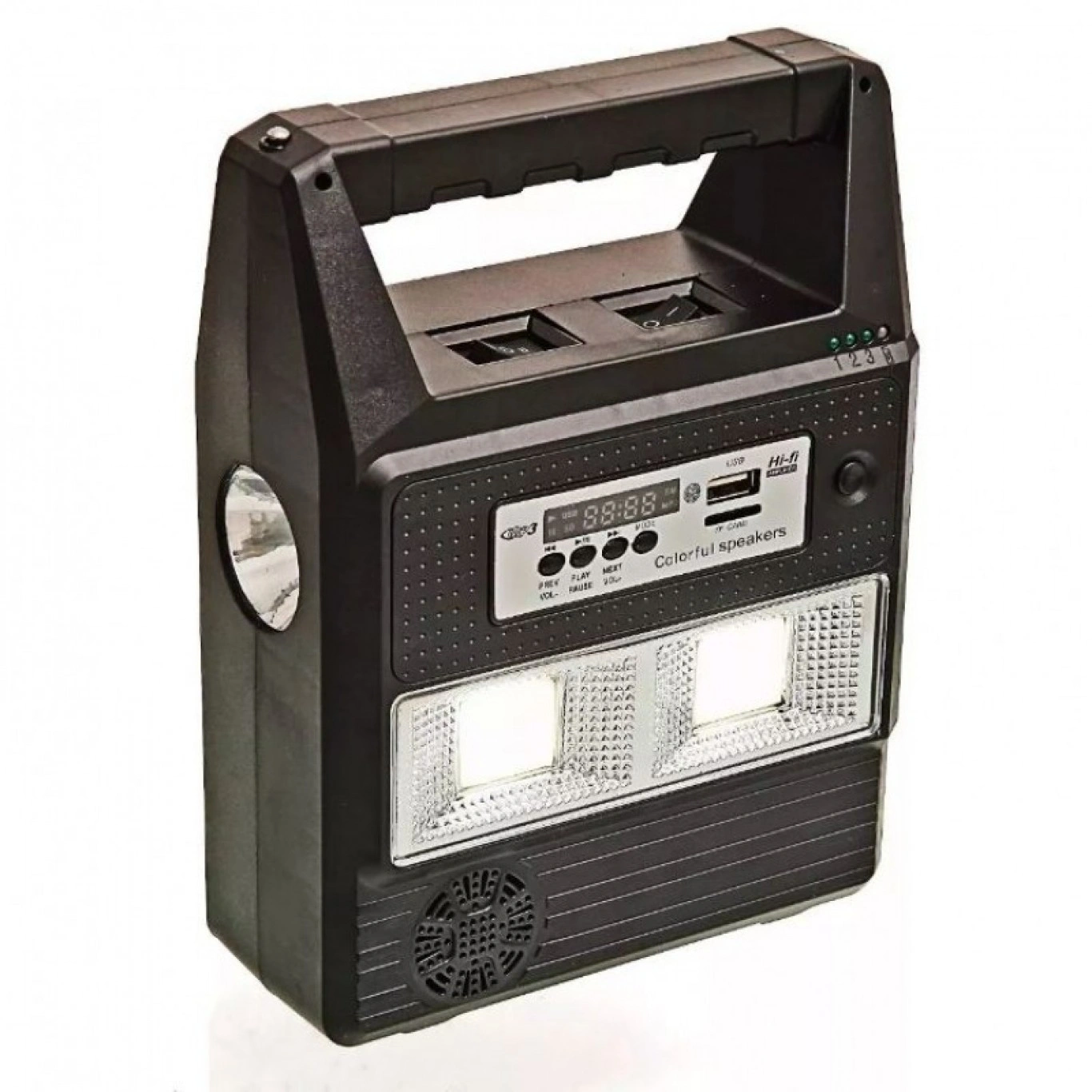 ✔️ Κεντρική Μονάδα με Μπαταρία USB/SD Mp3 Player με FM Radio φακός και φωτιστικό LED