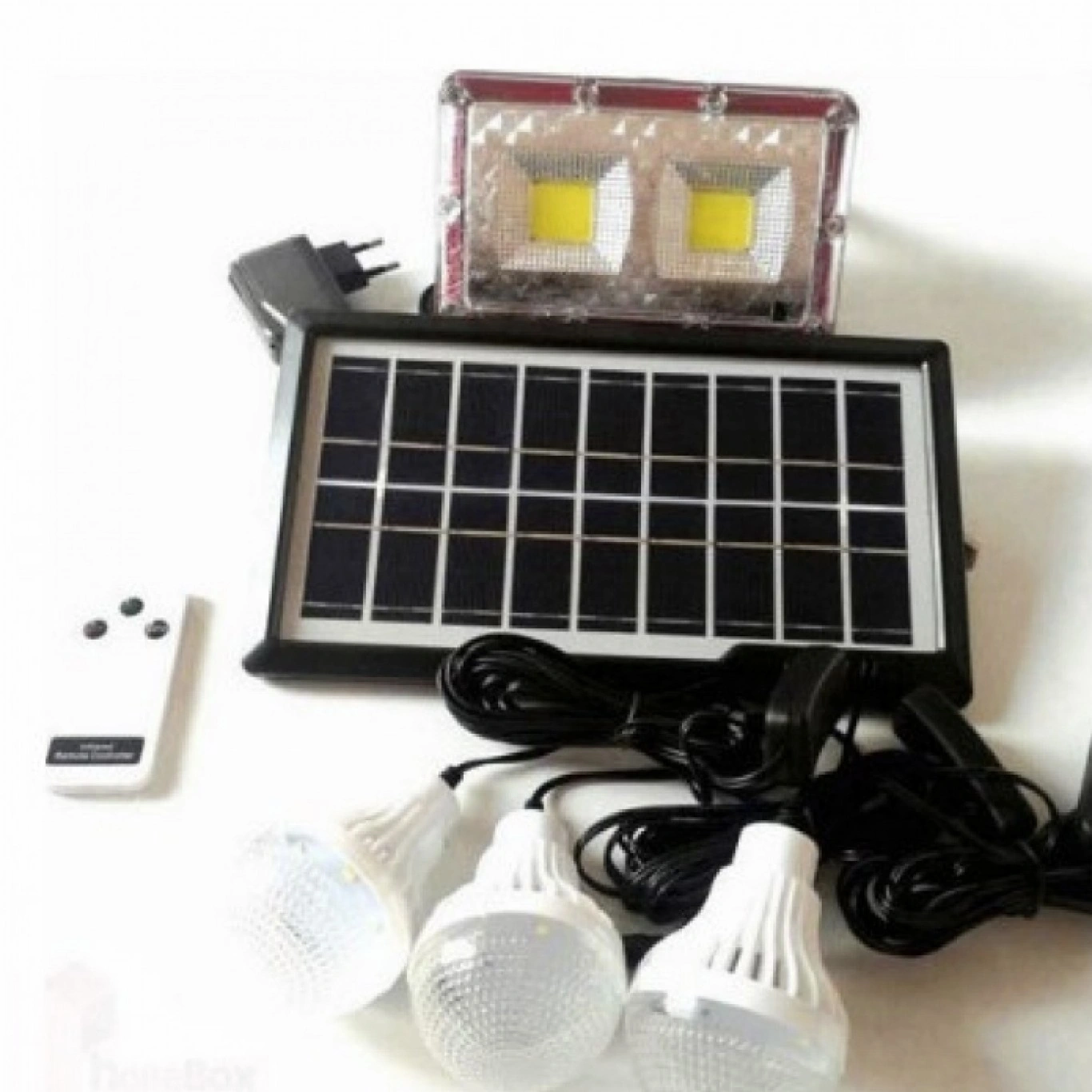 Τηλεχειριζόμενο Ηλιακό Σύστημα Φωτισμού & Φόρτισης με Πάνελ 3,5W, Μπαταρία, Φωτιστικό – Προβολέα 400LM + 3 Λάμπες LED 150 Lumens GD-11