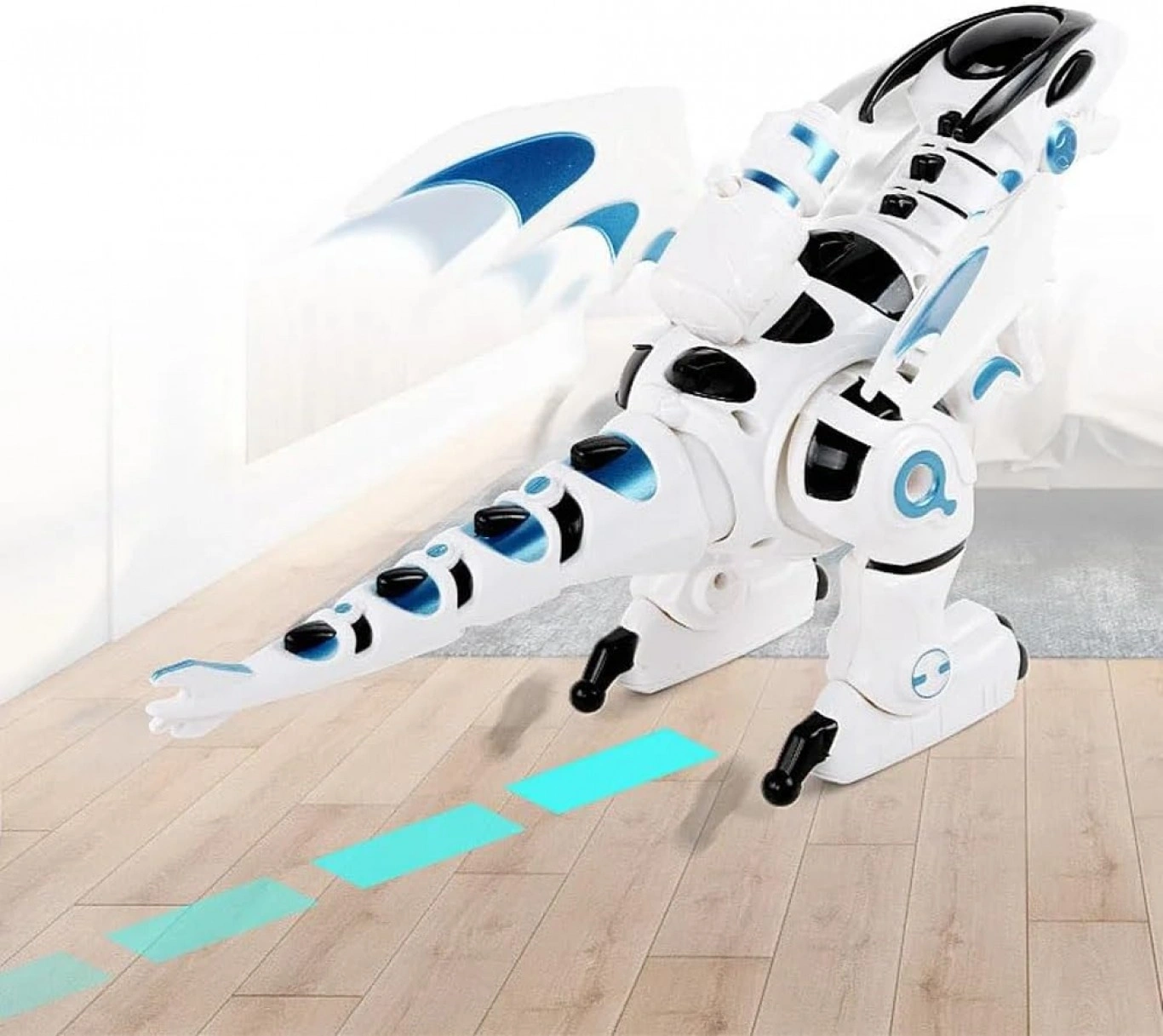 Ο δράκος μοιάζει με ρομπότ, βρυχάται με το πάτημα ενός κουμπιού, περπατάει και κουνάει τα χέρια, το κεφάλι και τα φτερά του.