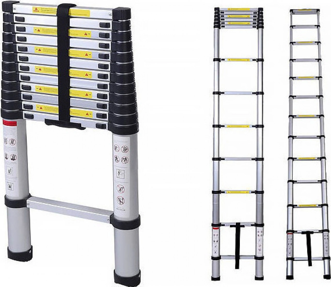 Τηλεσκοπική σκάλα αλουμινίου επαγγελματική, είναι πολύ εξυπηρετική και στιβαρή, ιδανική για τεχνίτες. Αναδιπλούμενη έτσι ώστε να μην έχετε κανένα πρόβλημα στην μεταφορά και αποθήκευσή της.