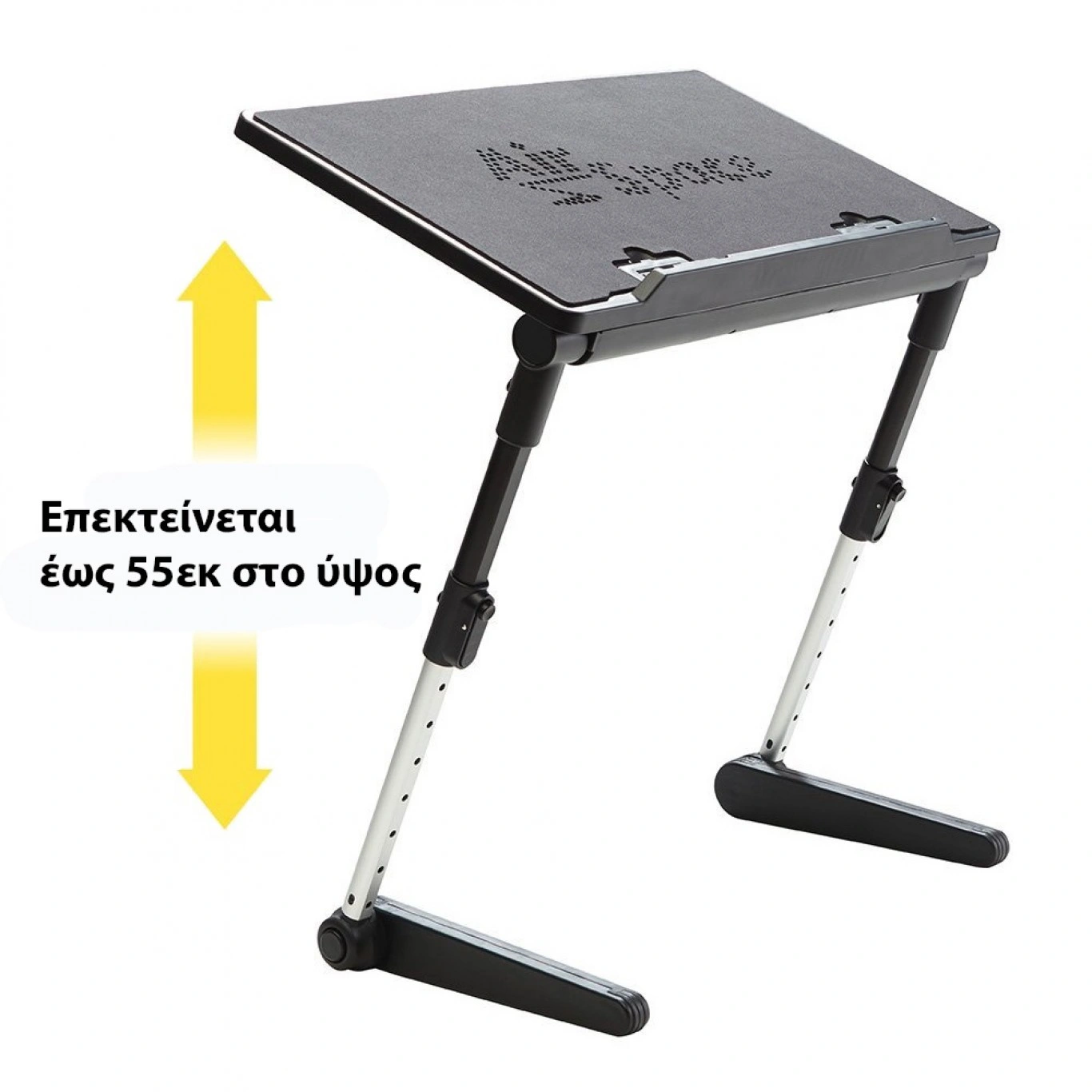 Φανταστικό πτυσσόμενο τραπεζάκι για το laptop, το notebook, το tablet κλπ.Χρησιμοποιείστε το μπροστά στην τηλεόραση, στο κρεβάτι, στην κουζίνα, στο μπαλκόνι, σαν μικρό γραφείο και τραπεζάκι για το laptop, πάρτε το μαζί σας στην εξοχή, στο camping, ακόμα και στην παραλία! Ιδανικό για τα παιδιά!✔️Ανθεκτικός σκελετός, πολλές θέσεις τοποθέτησης.✔️Διαθέτει επίσης έναν ενσωματωμένο ανεμιστήρα ψύξης, ώστε ο φορητός υπολογιστής σας να μην υπερθερμαίνεται ποτέ.✔️Κλειδώνει στην τέλεια θέση και έχει ένα επεκτάσιμο χείλος για να συγκρατεί σταθερά τον φορητό υπολογιστή σας στη θέση του.✔️Με αντιολισθητική επιφάνεια αφρού.✔️Ρυθμιζόμενο σε ύψος και κλίση παίρνει όποια μορφή σας εξυπηρετεί και έχει πολλές διαφορετικές θέσεις τοποθέτησης!✔️Είναι ελαφρύ, μεταφέρεται εύκολα από χώρο σε χώρο, και διαθέτει έξτρα βάση για χρήση ποντικιού.✔️Κλείνει για να φυλάσσεται και δεν πιάνει καθόλου χώρο.✔️Ιδανικό για να τρώτε ή να διαβάζετε στον καναπέ, στο κρεβάτι, το μπαλκόνι, τον κήπο, την εξοχή, το camping, το σκάφος κλπ.
