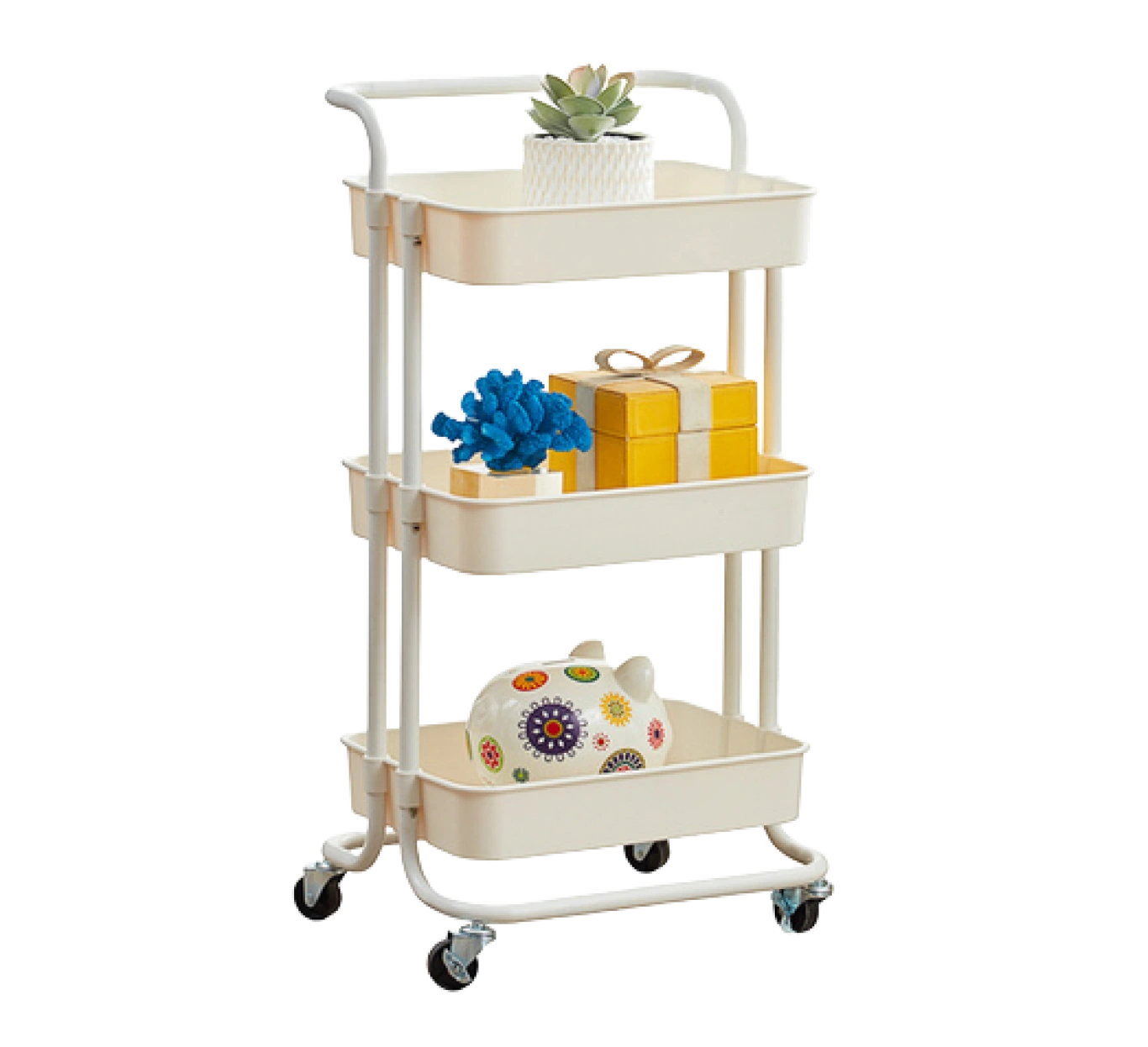 Η ραφιέρα – καρότσι με ρόδες διαθέτει 3 διάτρητα ράφια και αποτελεί ένα πολύ χρήσιμο έπιπλο το οποίο θα σας βοηθήσει να έχετε πάντα μία οργανωμένη κουζίνα ή ένα περιποιημένο μπάνιο.