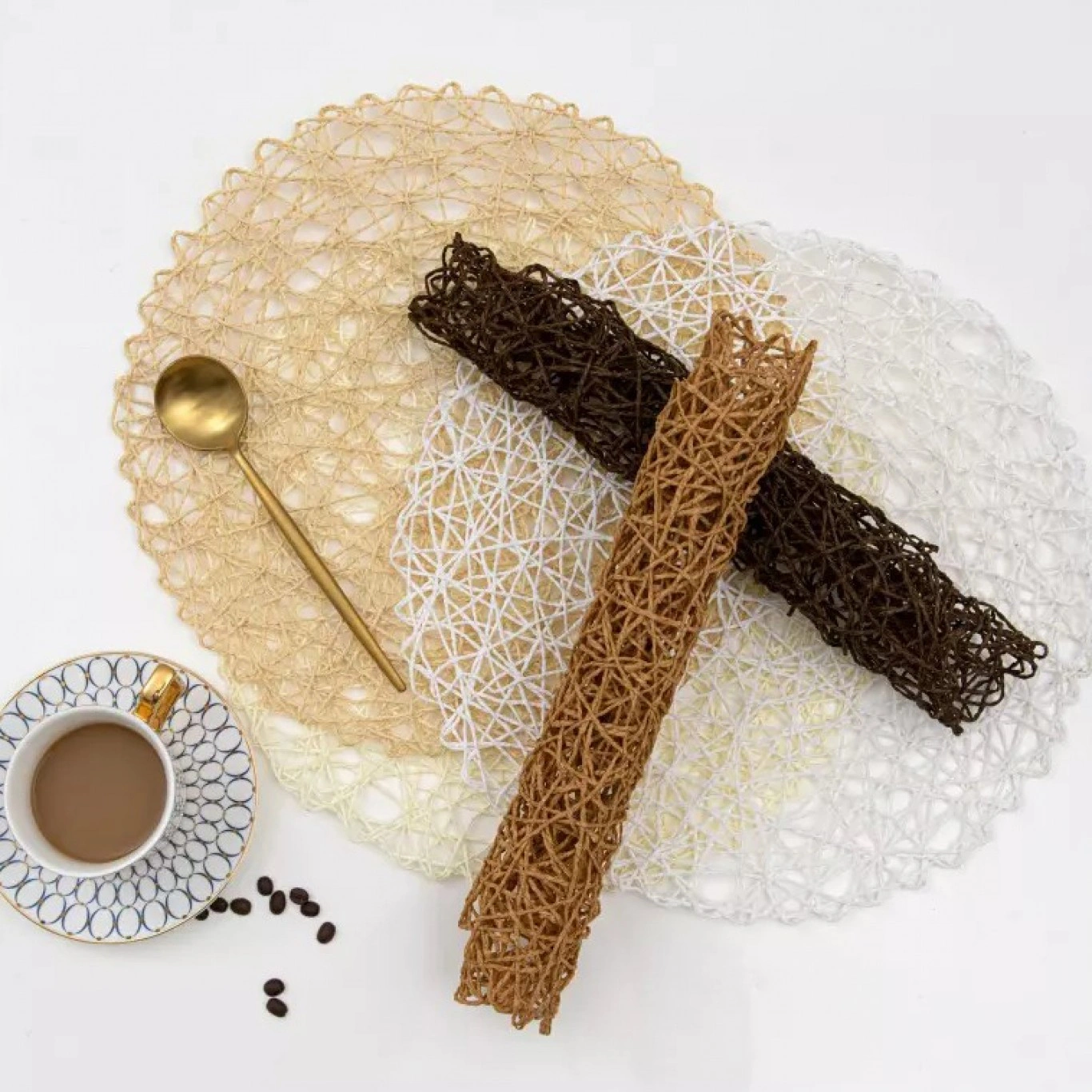 Βαμβακερό Στρογγυλό Σουπλά σε Σχέδιο Δίχτυ 38cm