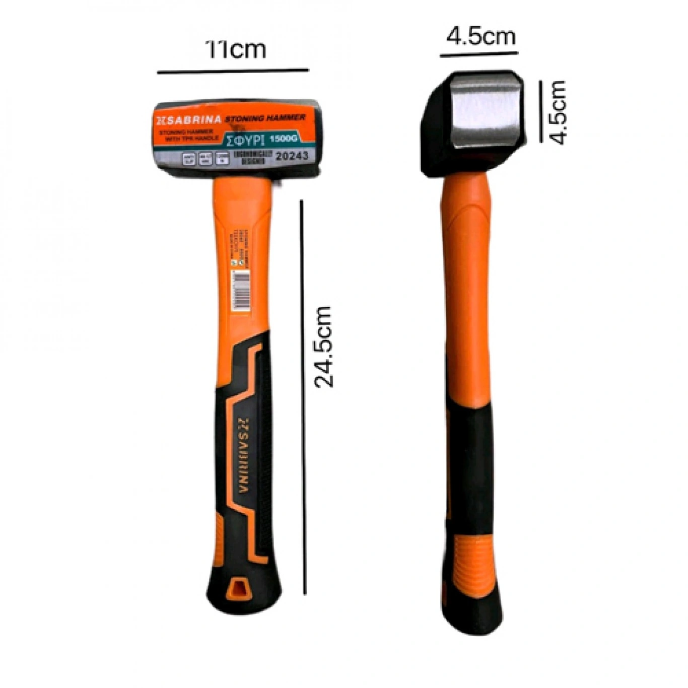 • Άνετη εργονομική αντιολισθητική λαβή.• Σφυρήλατη κεφαλή 48-57 HRC.• Βάρος 1500gr.