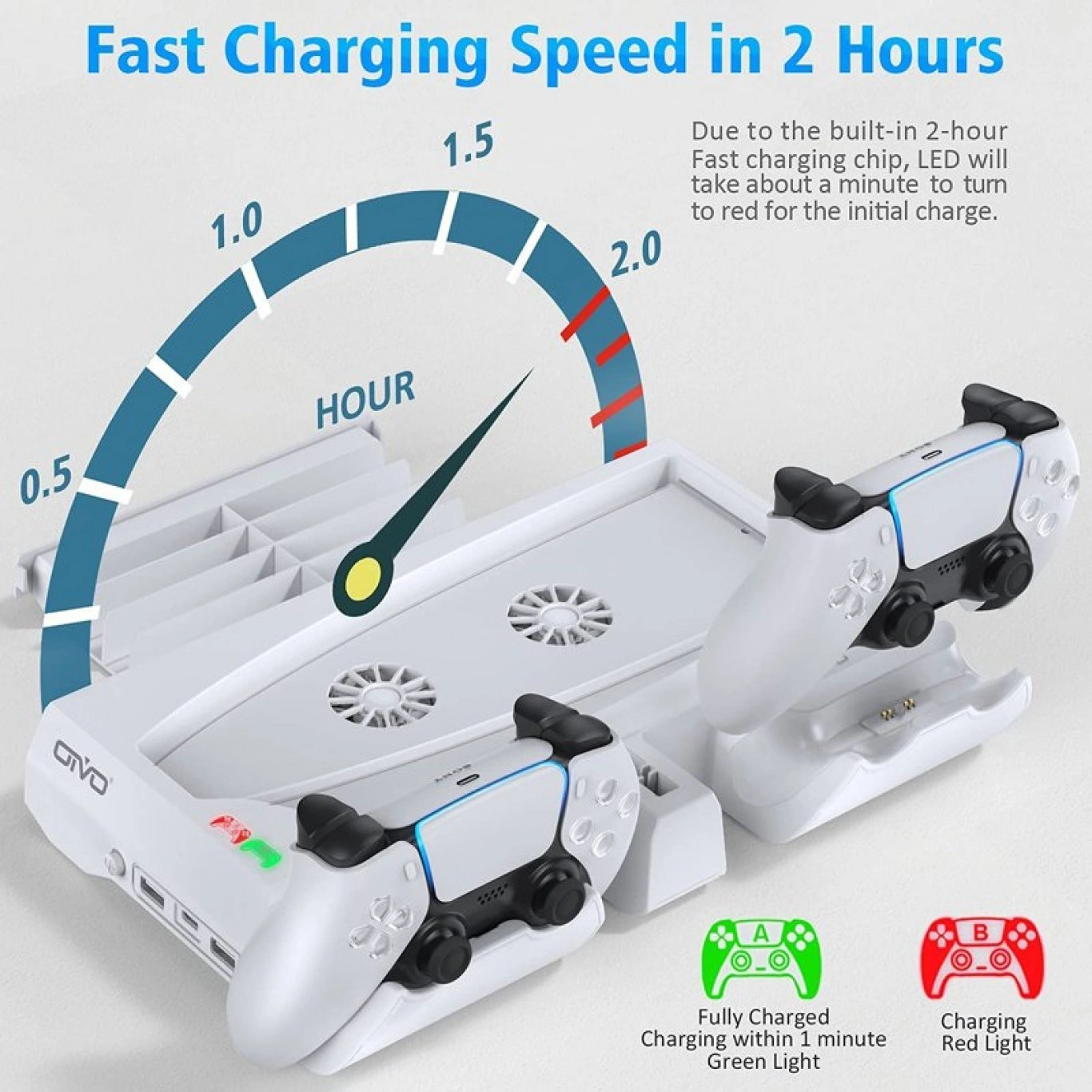 ✔️Η βάση εξοπλίζεται με 2 θέσεις φόρτισης για τα χειριστήρια PS5, φορτίζοντας γρήγορα μέσα σε 2-3 ώρες.