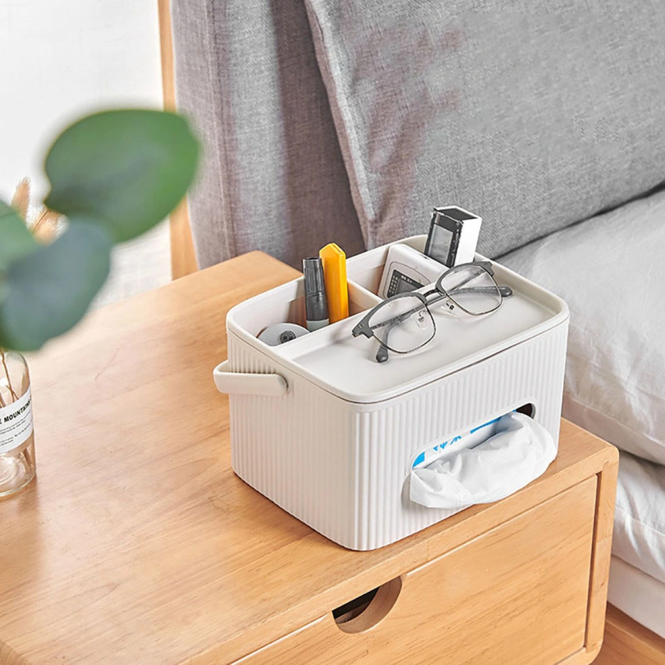 Μία ιδιαίτερη θήκη για χαρτομάντηλα σε λευκό χρώμα, κατάλληλη για να τα προστατεύει από σκόνη, αλλά και για την οργάνωση μικροαντικειμένων.✔️ Αποτελεί τον πιο πρακτικό τρόπο αποθήκευσης.✔️ Μπορεί να χρησιμοποιηθεί και σαν διακοσμητικό αξεσουάρ στο μπάνιο, στην κρεβατοκάμαρα αλλά και σε χώρους εργασίας. ✔️ Διαθέτει εσωτερική θήκη για χαρτομάντηλα και εξωτερικές θήκες αποθήκευσης μικροαντικειμένων.✔️ Στιβαρή κατασκευή που την καθιστά ανθεκτική ακόμα και σε περίπτωση που σας πέσει.✔️ Κατάλληλη για το σαλόνι, την κρεβατοκάμαρα, την κουζίνα, το γραφείο και άλλα μέρη του σπιτιού σας.