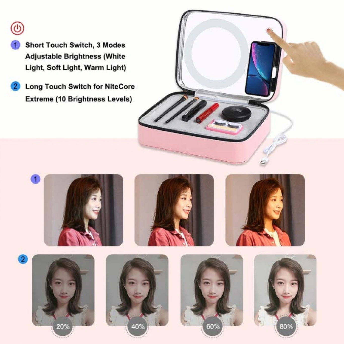 Το βαλιτσάκι αυτό σας επιτρέπει όχι μόνο να οργανώνετε τα καλλυντικά και τα πινέλα σας, αλλά και να καταγράφετε vlogs και να κάνετε ζωντανές μεταδόσεις, καθώς διαθέτει καθρέφτη με LED ενσωματωμένο φωτισμό & βάση για το κινητό σας!