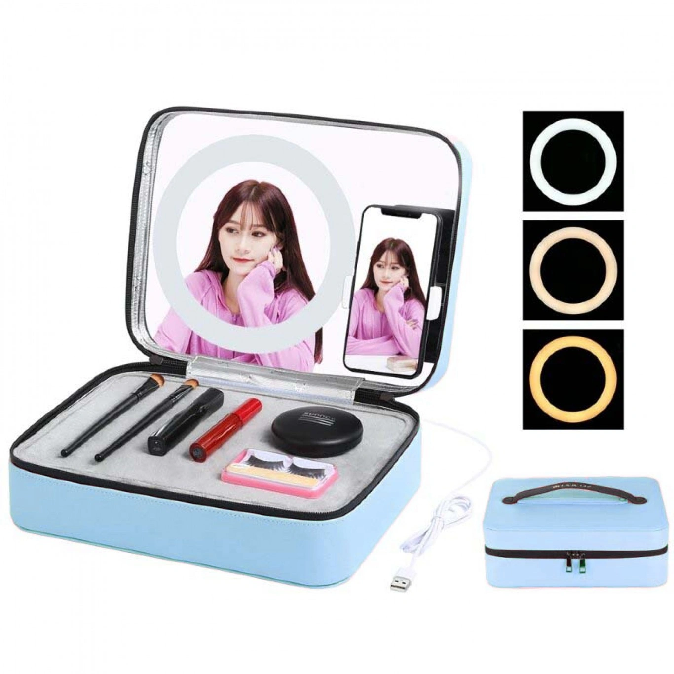 Βαλιτσάκι καλλυντικών με ενσωματωμένο καθρέφτη & δαχτυλίδι Ring led light φωτιστικό