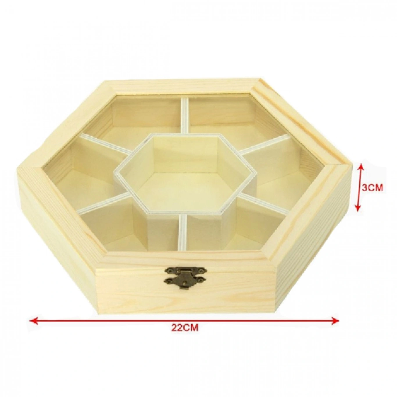Ξύλινη Εξάγωνη Κοσμηματοθήκη-Μπιζουτιέρα 22×3 εκ