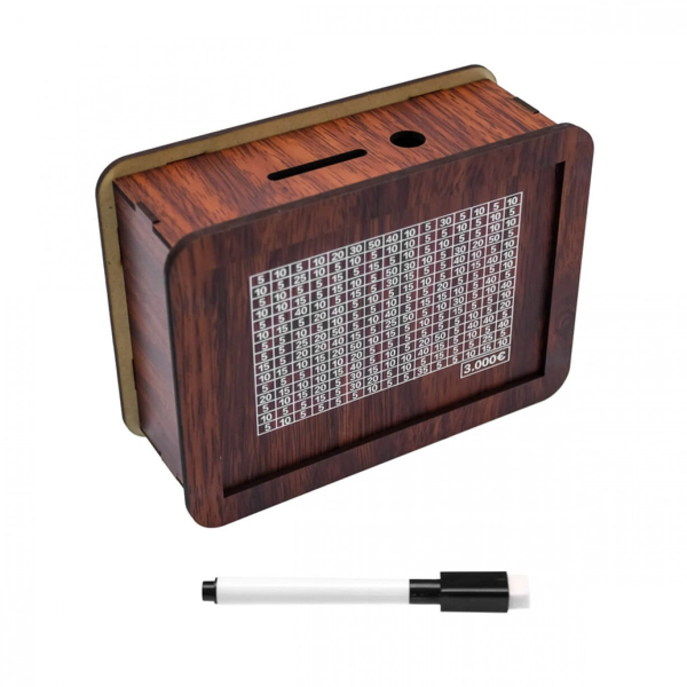 Ξύλινο Ταμιευτήριο Κουμπαράς με Ειδικό Μαρκαδόρο Σημειώσεων 17×12.5×6.5 cm